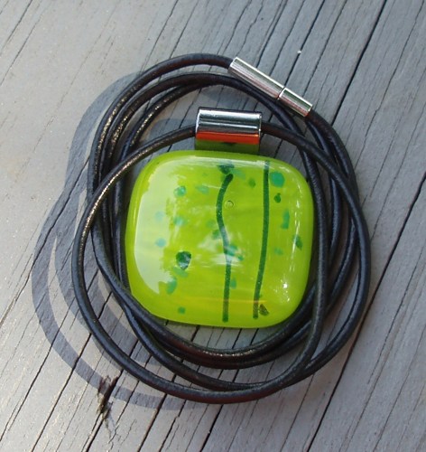 Bright Green Fused Glass Pendant | HCLTreasures - Jewelry on ArtFire
