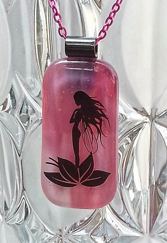 Pink Fairy Rectangle Fused Glass Pendant